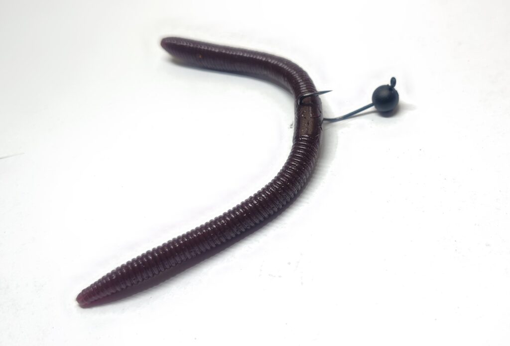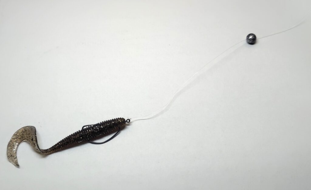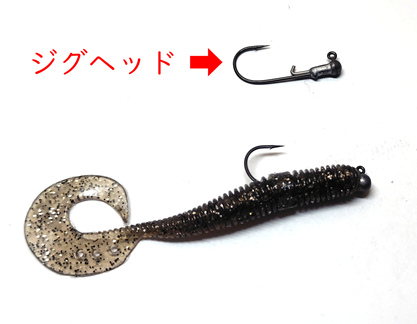 ラインにジグヘッドを結んでワームの真ん中にジグヘッドをさして使うのが